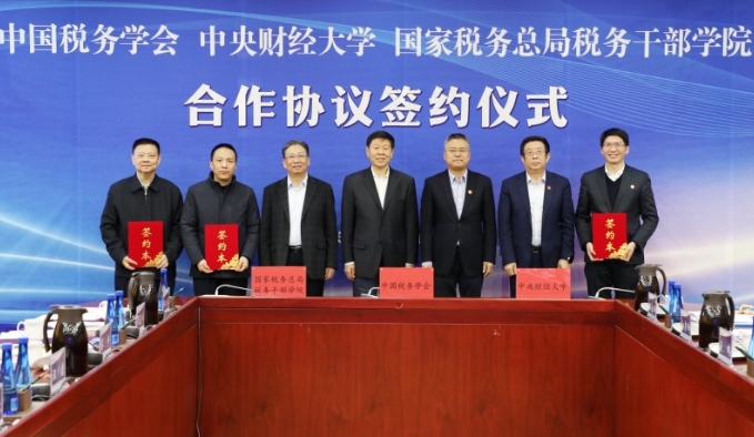 3月12日,中国税务学会与中央财经大学、国家税务总局税务干部学院合作协议签约仪式举行。中国税务学会会长王军、第一副会长汪康、副会长蔡宇,中央财经大学党委书记吴国生、校长马海涛,校党委常委、副校长陈斌开,国家税务总局税务干部学院院长段雨澜、副院长岳颂出席。